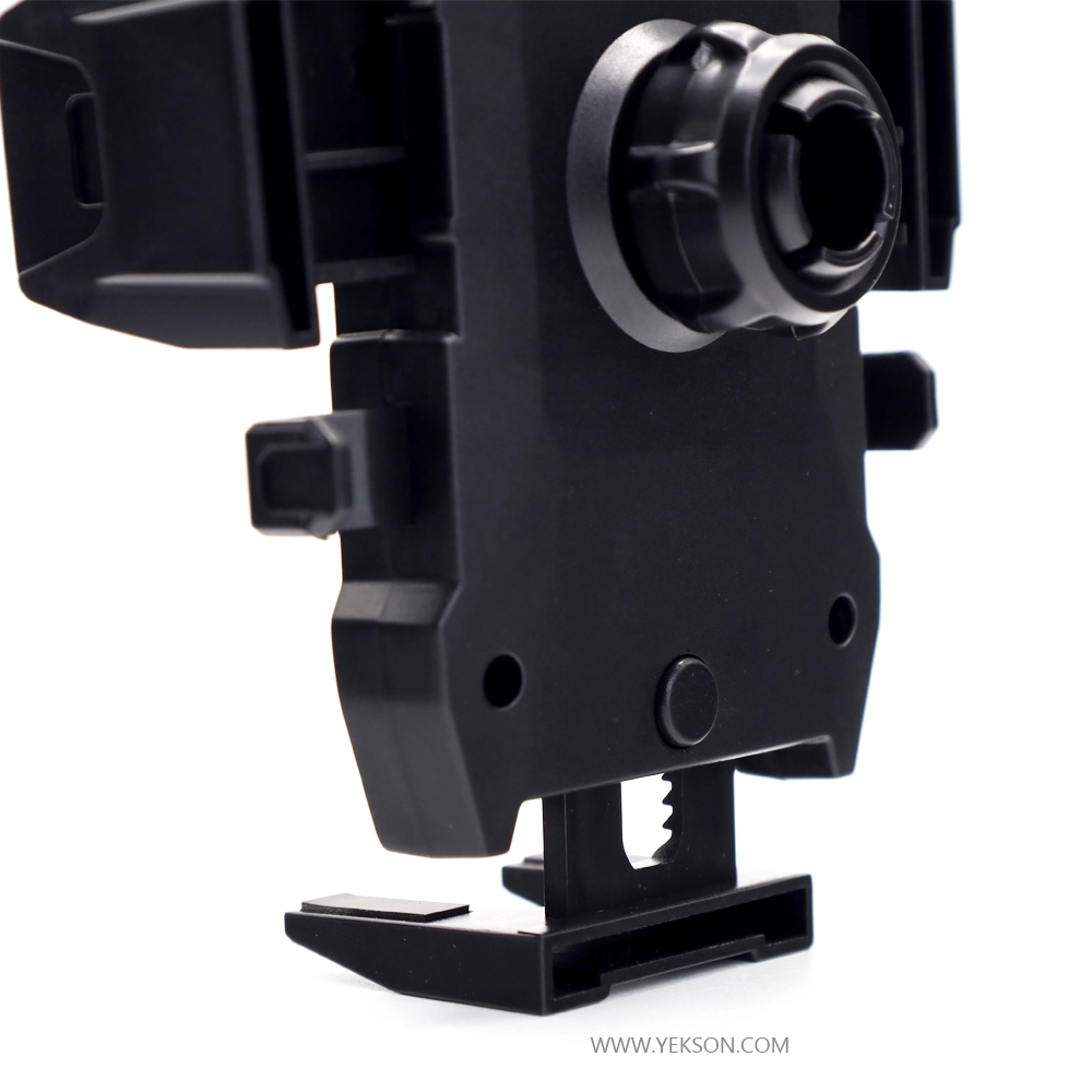📏 پایه زیرین متحرک (Adjustable Foot): برخلاف مدلهای قدیمی، فک پایینی این هولدر قابلیت جابجایی دارد. این یعنی میتوانید آن را متناسب با قدِ گوشیهای بزرگ (مثل آیفون پرو مکس یا سامسونگ اولترا) تنظیم کنید تا گیرهها روی دکمههای پاور و ولوم نیفتند.