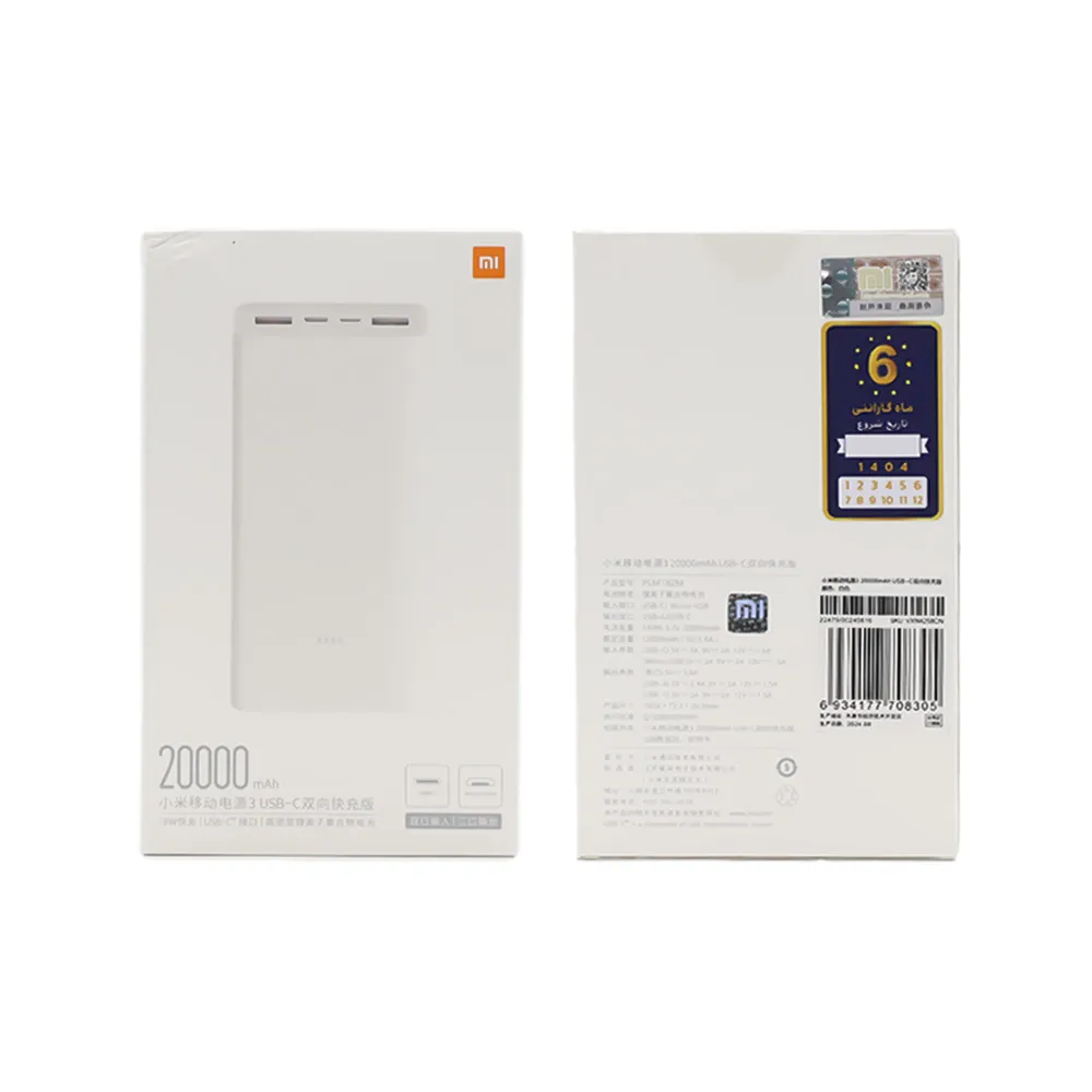 وجود درگاههای متنوع از جمله USB-A و USB-C، قابلیت شارژ همزمان چند دستگاه را فراهم کرده و نشانگرهای LED تعبیهشده روی بدنه، وضعیت شارژ باتری را بهصورت دقیق نمایش میدهند. پاوربانک 20000 شیائومی با وزن مناسب و ابعاد جمعوجور، بهراحتی در کیف یا کولهپشتی جای میگیرد و همراهی قابلاعتماد در سفر، محل کار یا دانشگاه خواهد بود.