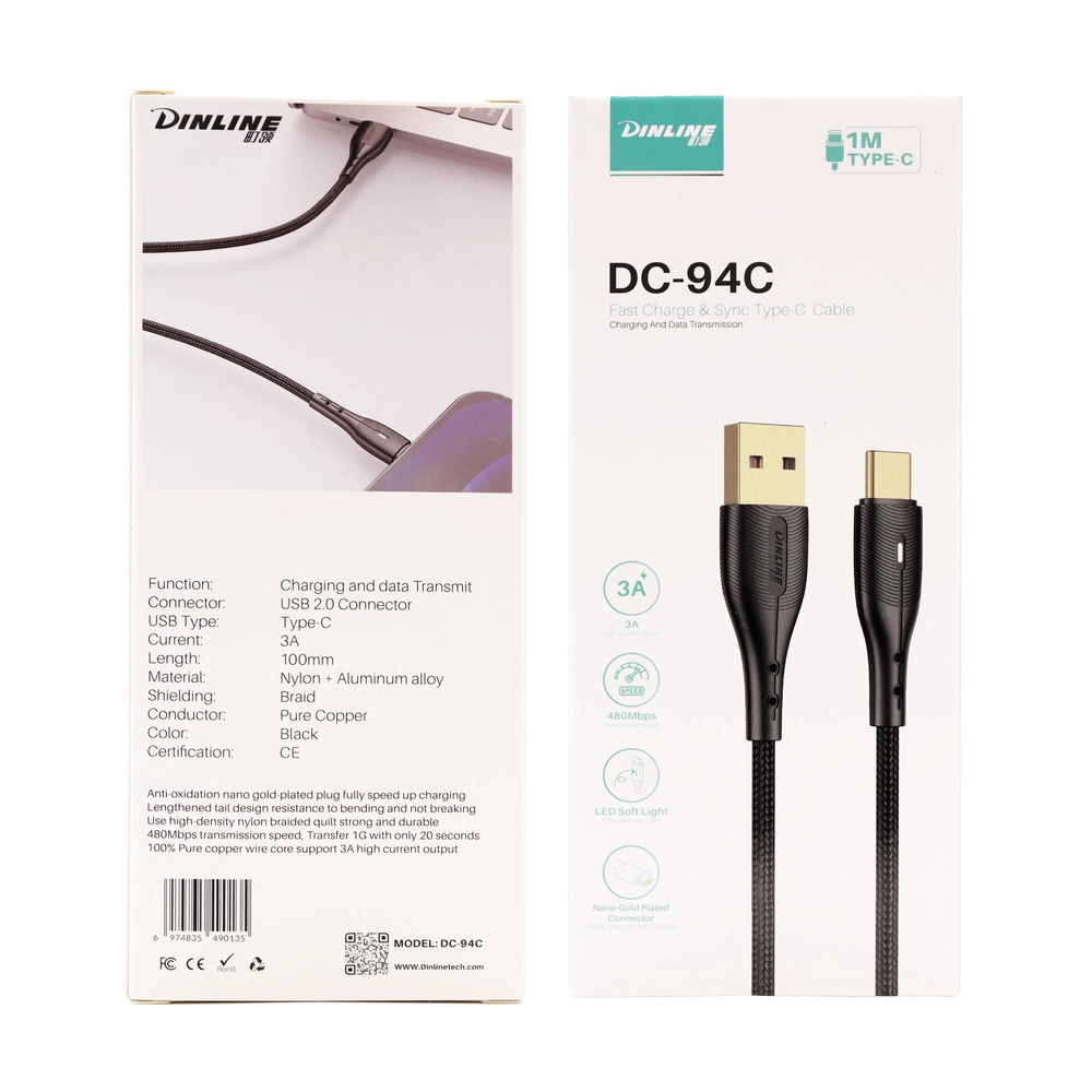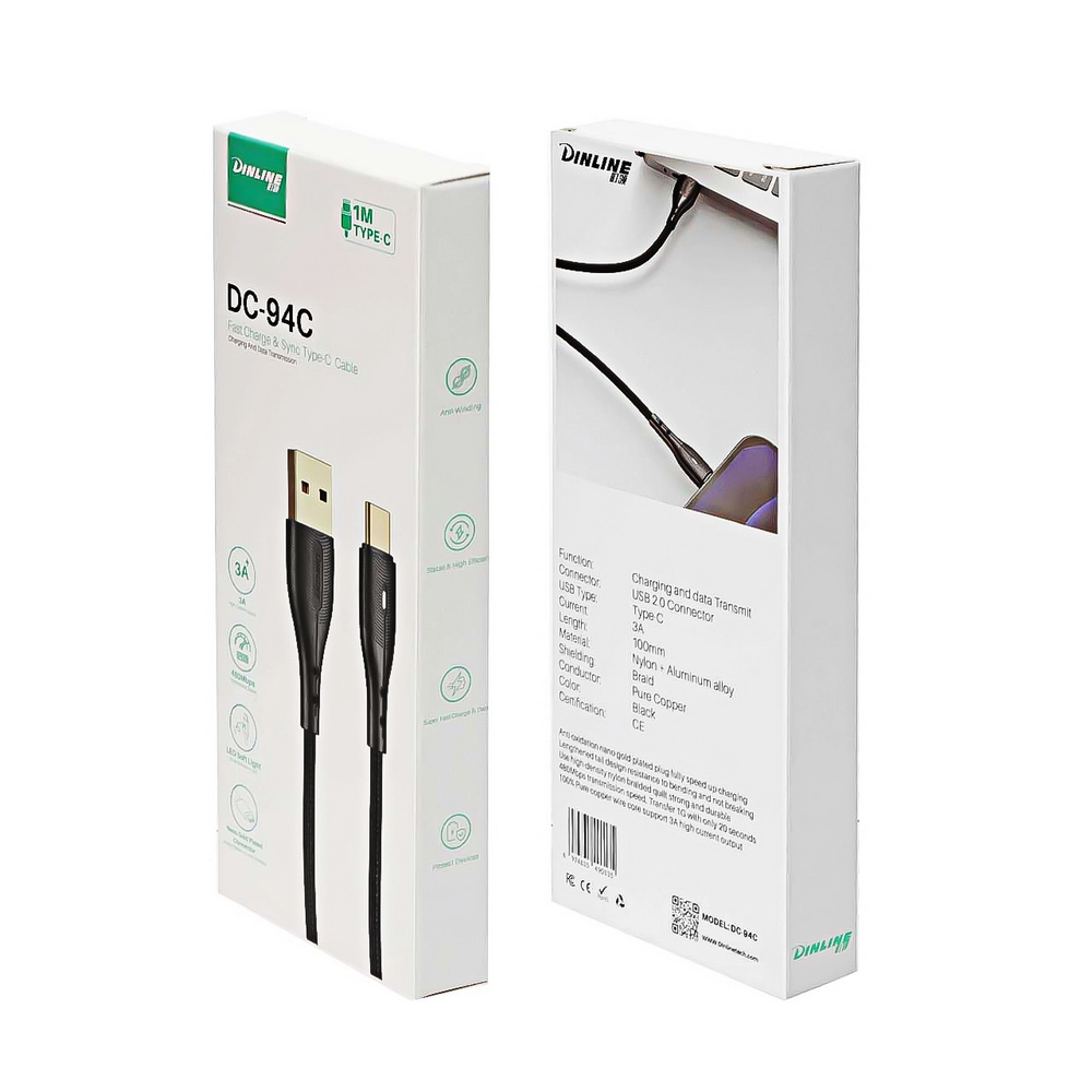 • کابل شارژ DINLINE DC 94C یک کابل USB به TYPE-C است که معمولاً برای شارژ و انتقال دادهها بین دستگاهها مانند گوشیهای هوشمند، تبلتها و دیگر دستگاههای الکترونیکی استفاده میشود.