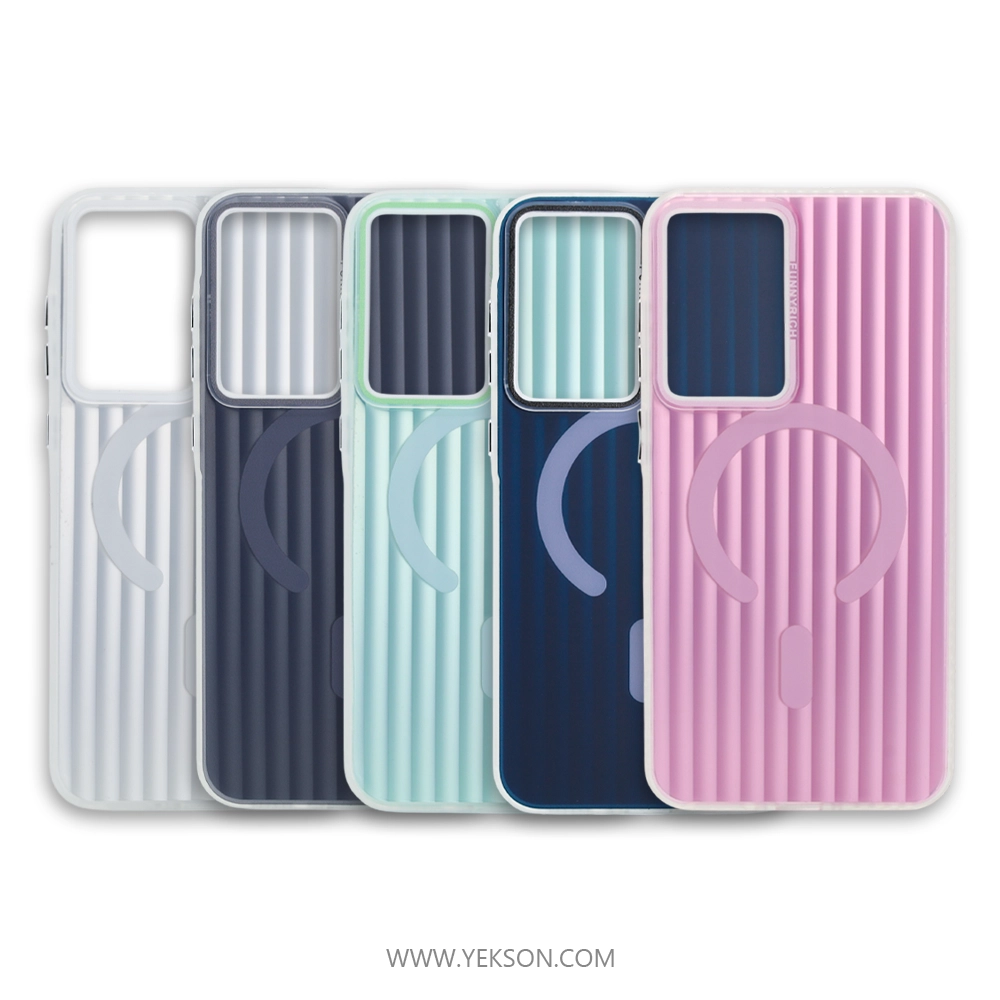 گارد کرکرهای سامسونگ A56 با طراحی شیارهای عمودی و دایرهی طرح مگسیف، ظاهری مدرن و متفاوت به گوشی میدهد. بدنهی پشتی از PC سخت و حاشیهها از TPU ژلهای ایربگدار ساخته شده تا در برابر ضربه و افتادنهای روزمره محافظت مناسبی ایجاد کند. این قاب با طرح IMD مقاومت بیشتری در برابر خطوخش دارد و متریال شفاف اطراف آن مقاوم در برابر زرد شدن است. لبهی برجستهی دوربین نیز از تماس مستقیم لنز با سطوح جلوگیری میکند.