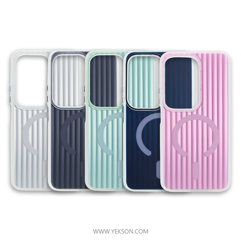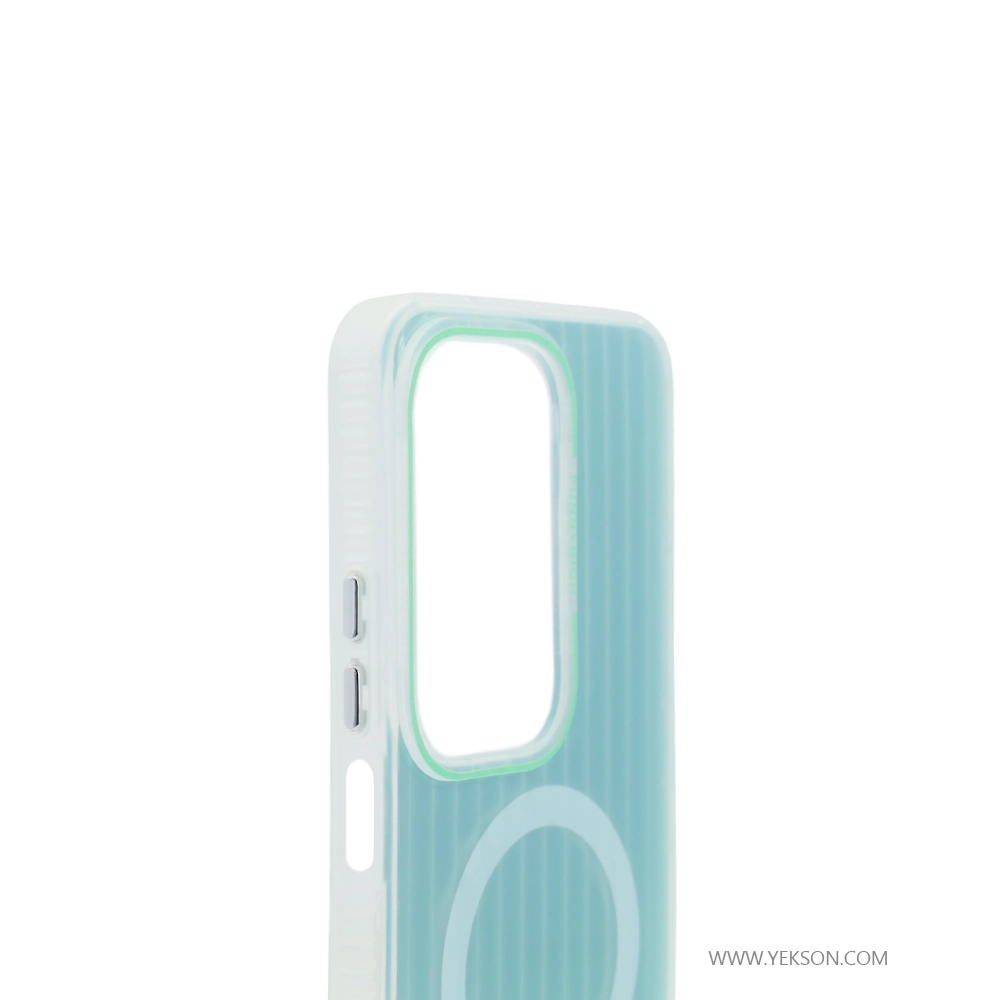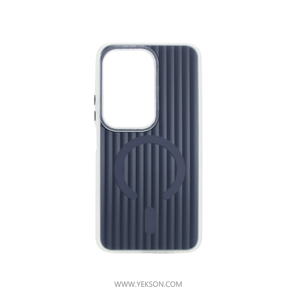 🎨 طراحی و بافت: پشت قاب دارای بافت کرکره‌ای شیاردار عمودی با طرح IMD است که علاوه بر ایجاد جلوه‌ی سه‌بعدی چشم‌نواز، به کاهش لغزش قاب در دست کمک می‌کند. دایره‌ی طرح مگ‌سیف نیز به زیبایی بصری قاب افزوده است.