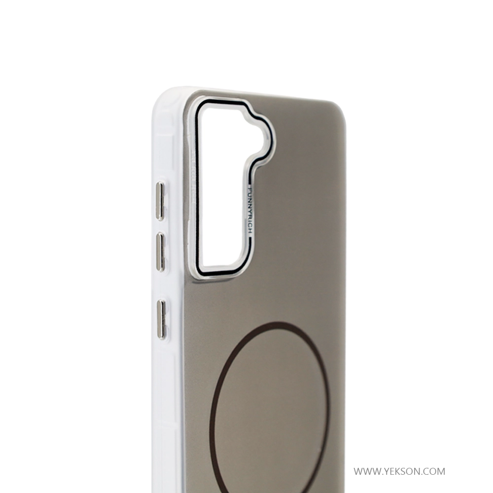 اگر به دنبال قابی هستید که ظاهر گوشی شما را چند برابر جذابتر کند و همگام با جدیدترین ترندهای روز باشد، گارد FUNNYRICH مات سامسونگ S21 FE بهترین انتخاب برای شماست. این قاب با ترکیبی هوشمندانه از متریالهای مقاوم و طراحی ظاهری مات، جلوهای خاص به گوشی هوشمند شما میبخشد. بدنه این قاب از دو بخش مجزا تشکیل شده است: پشت قاب از جنس طلق سخت و مات (PC) ساخته شده که در برابر زرد شدن مقاوم است، و بامپر (دور تا دور) آن از جنس TPU نرم و منعطف است. نکته متمایز این قاب، وجود طرح رینگ مگسیف در پشت آن است که بدون داشتن مگنت و سنگین کردن گوشی، ظاهری مدرن و شبیه به گوشیهای پرچمدار جدید به موبایل شما میدهد.